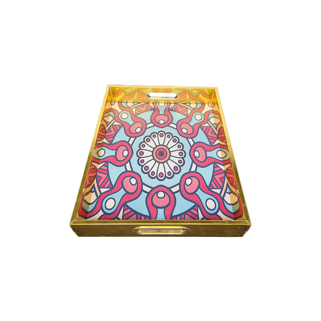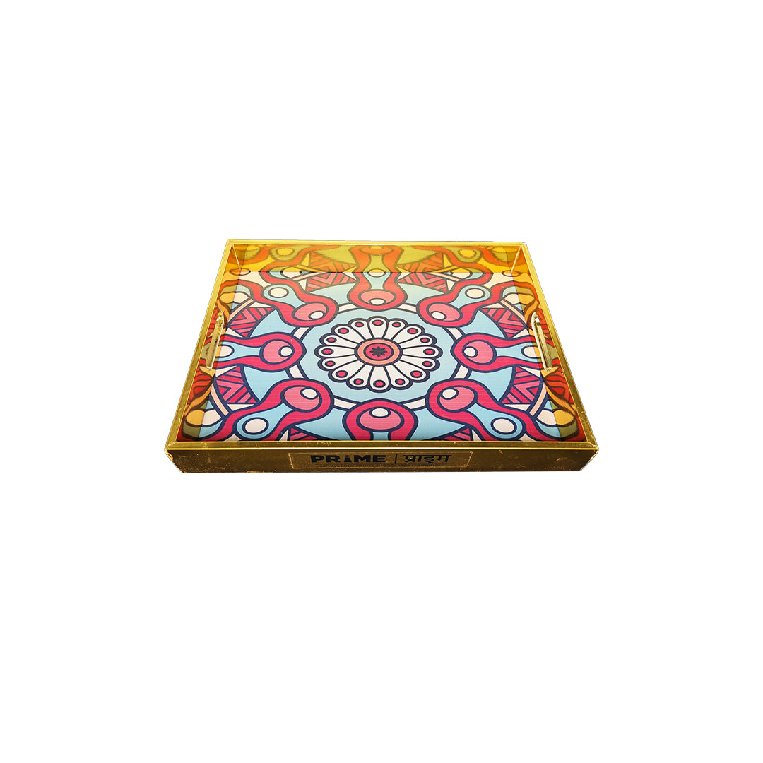 Add a splash of art and elegance to your home with this Vibrant Mandala Designer Serving Tray. Crafted with a bold multicolor mandala print and finished with a golden metallic border, this tray is more than just functional – it’s a statement piece for your décor. Perfect for serving drinks, snacks, or simply as a stylish centerpiece, this tray combines traditional art with modern luxury.