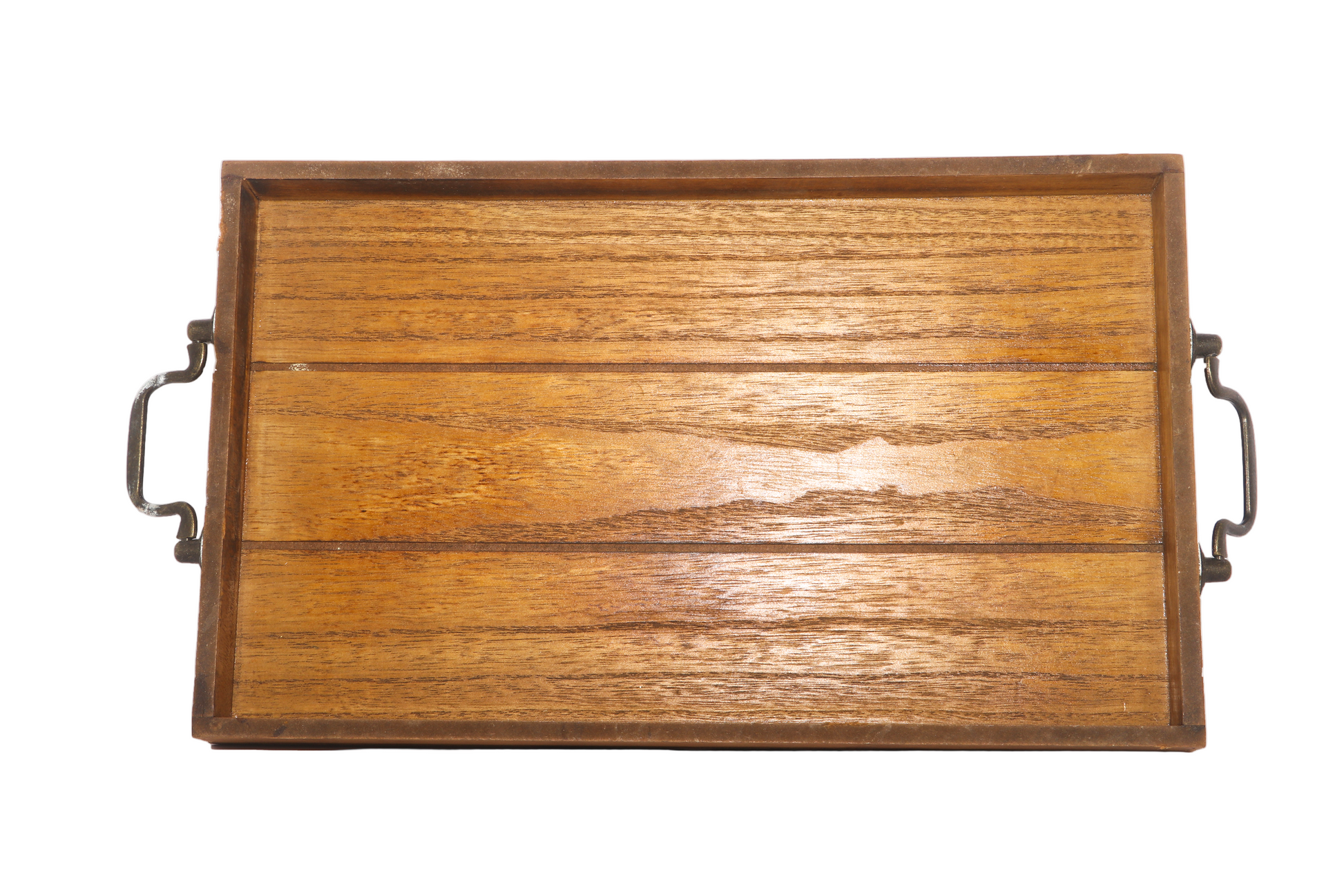 Bring timeless elegance and functionality to your dining and entertaining with the Heritage Oak Rectangular Serving Tray Handcrafted from durable wood, this rectangular tray highlights natural wood grain patterns that lend a rustic yet sophisticated appeal. Sturdy black metal handles add both style and practicality, making it perfect for serving drinks, breakfast in bed, or showcasing decorative accents.