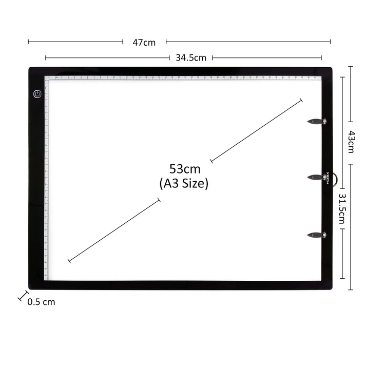 Bring your creativity to life with the Ultra-Slim LED Light Tracing Pad. Designed for artists, designers, students, and professionals, this sleek and durable tracing board ensures precision and comfort in every project. Its built-in ruler makes measurements effortless, while the touch-sensitive switch allows you to control lighting with ease. With rounded edges for safety and a crystal-clear surface, this light pad is perfect for sketching, calligraphy, tattoo design, animation, and more.