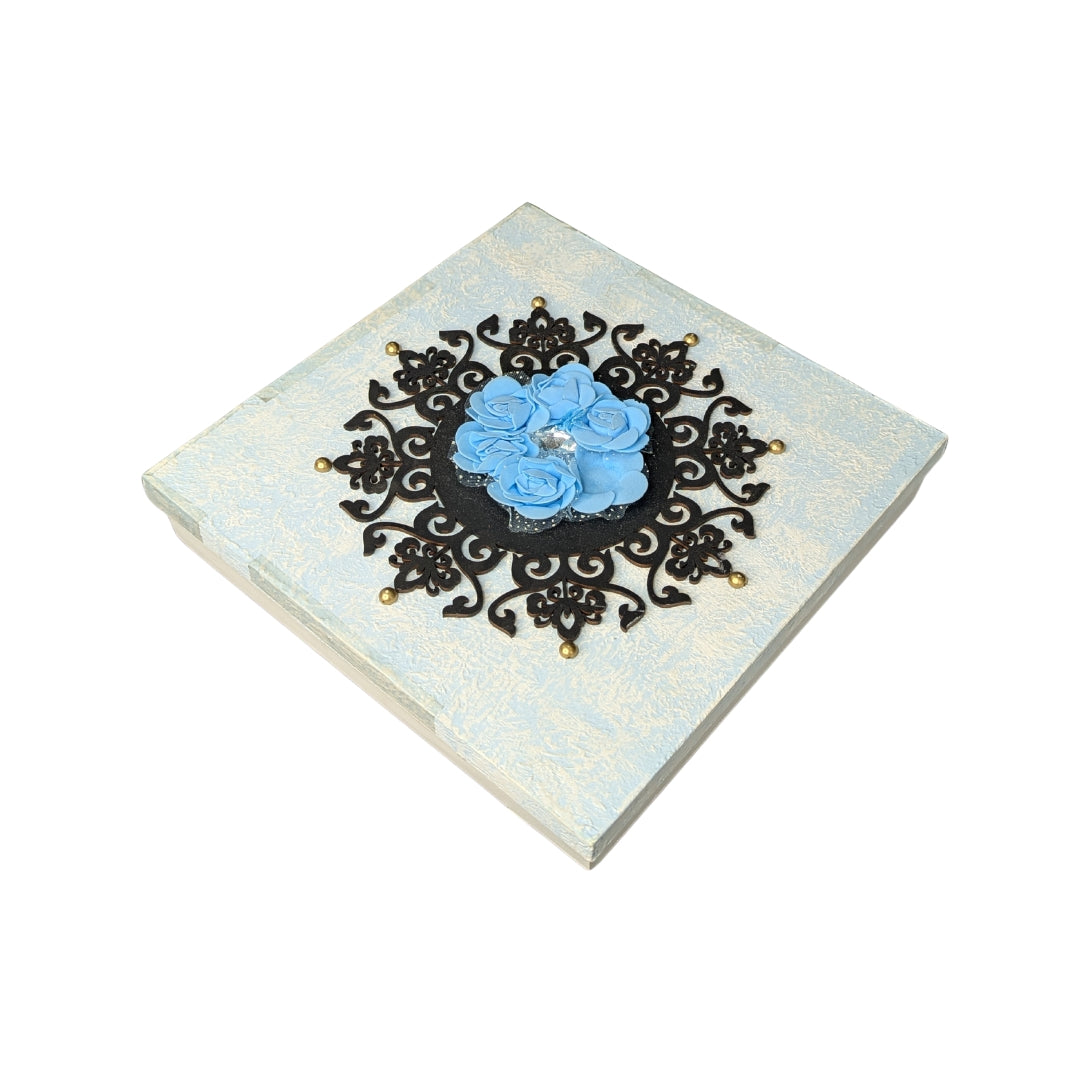 Elevate your gifting experience with this Floral Embellished Wooden Trinket & Gift Box, designed to bring charm, elegance, and functionality into any space. Featuring a beautifully crafted floral arrangement at the center surrounded by intricate antique-inspired patterns, this box embodies refined craftsmanship and aesthetic appeal.