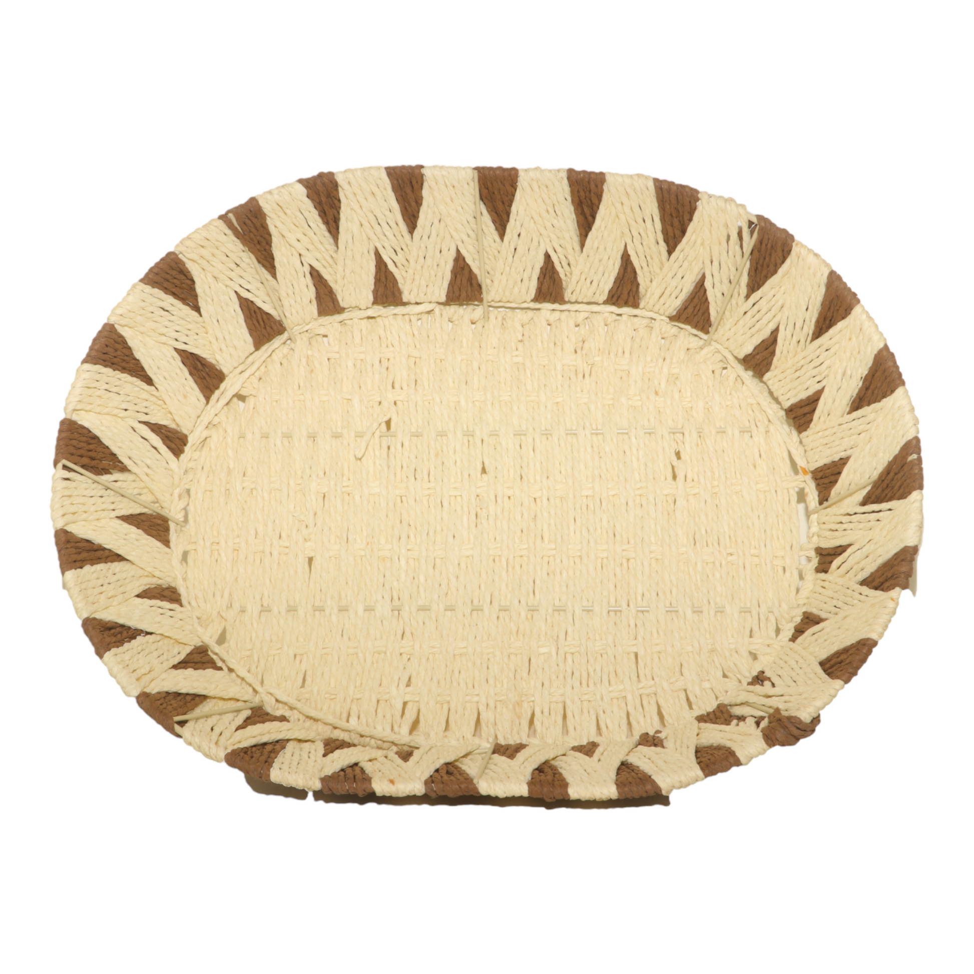 Bring a touch of artisanal charm to your home with this Handwoven Round Rope Basket, featuring an eye-catching brown and cream zigzag pattern. Expertly crafted from durable rope material, this lightweight yet sturdy basket is perfect for serving bread, fruits, or snacks, as well as for organizing small household items.