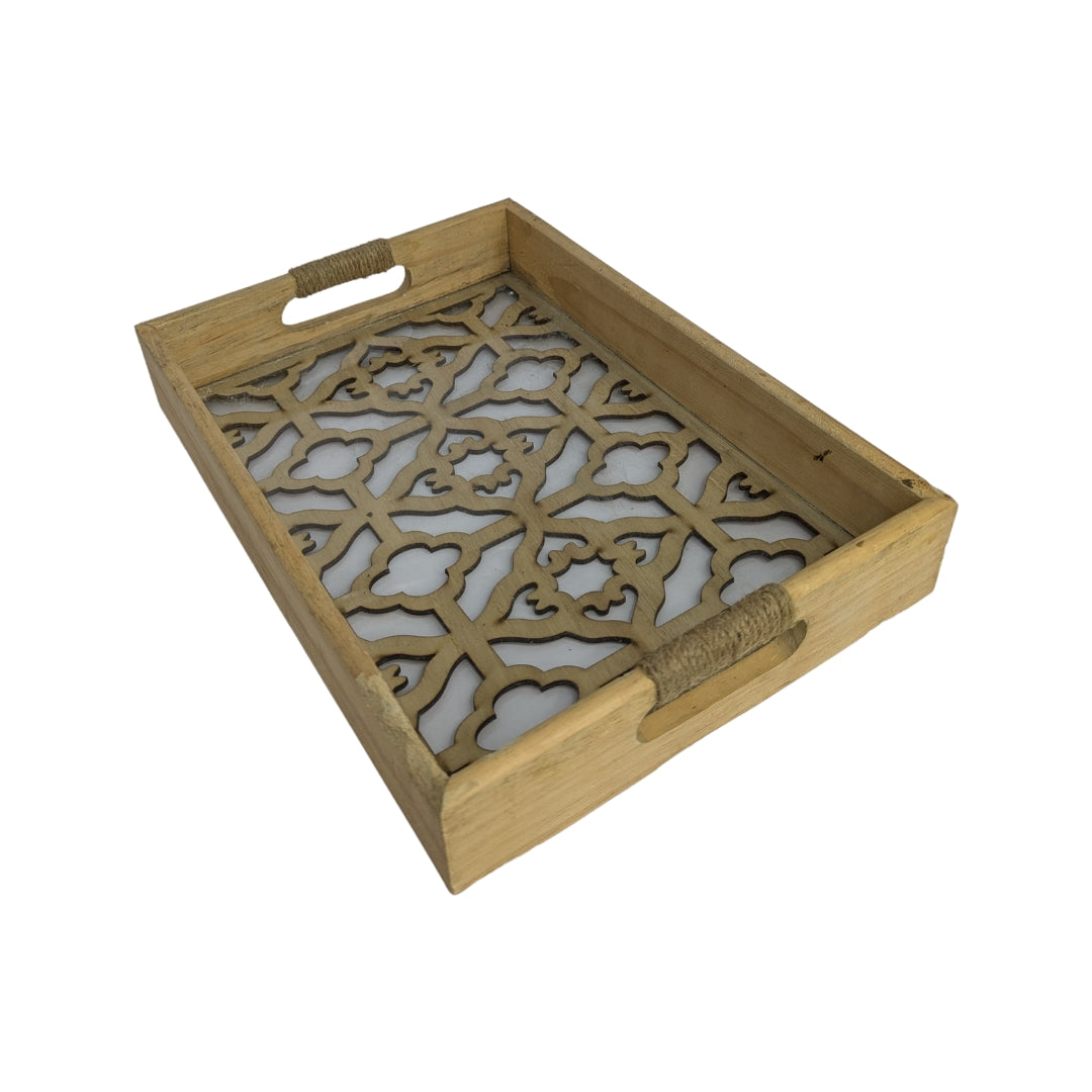 Intricate Cutwork Design Wooden Serving Tray