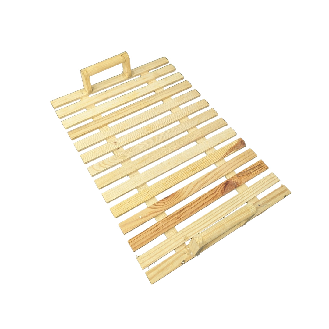 Organize and serve in style with this Foldable Wooden Slatted Tray. Crafted from natural wood, it features a slatted design for ventilation and lightweight handling. The built-in handles on both ends provide ease of carrying, while the foldable structure makes it compact for storage when not in use. Perfect for serving snacks, tea, coffee, or even as a multipurpose kitchen and dining accessory